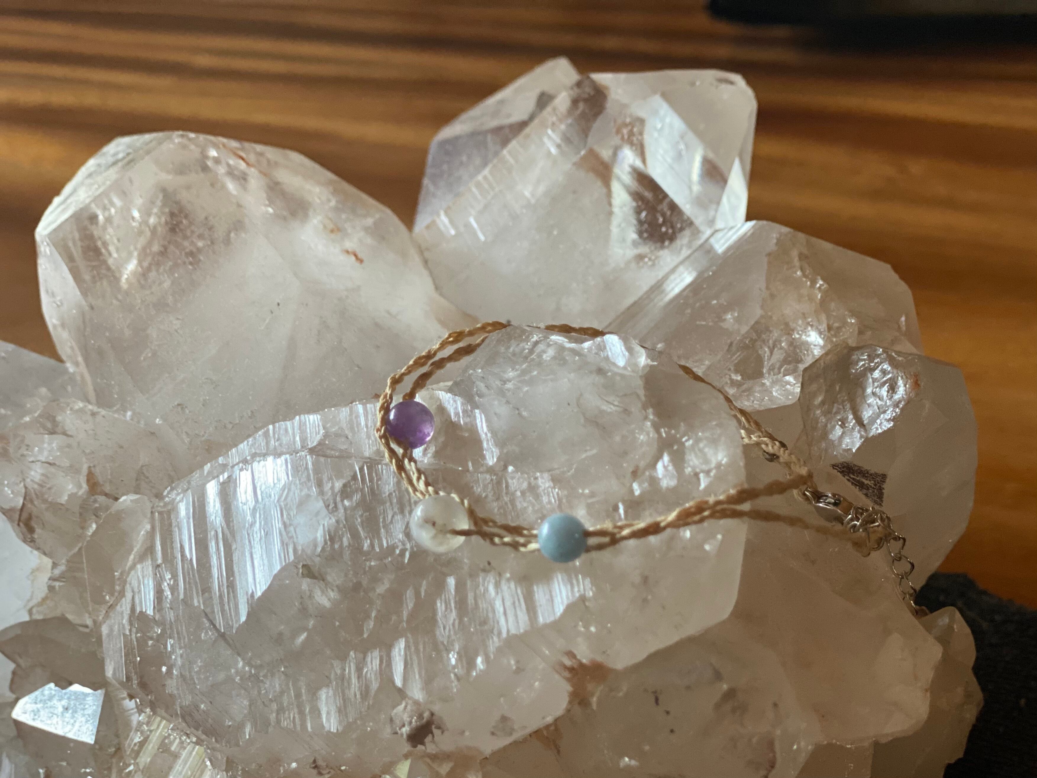 アクアマリン、ムーンストーン、アメジスト、水晶が入っています。